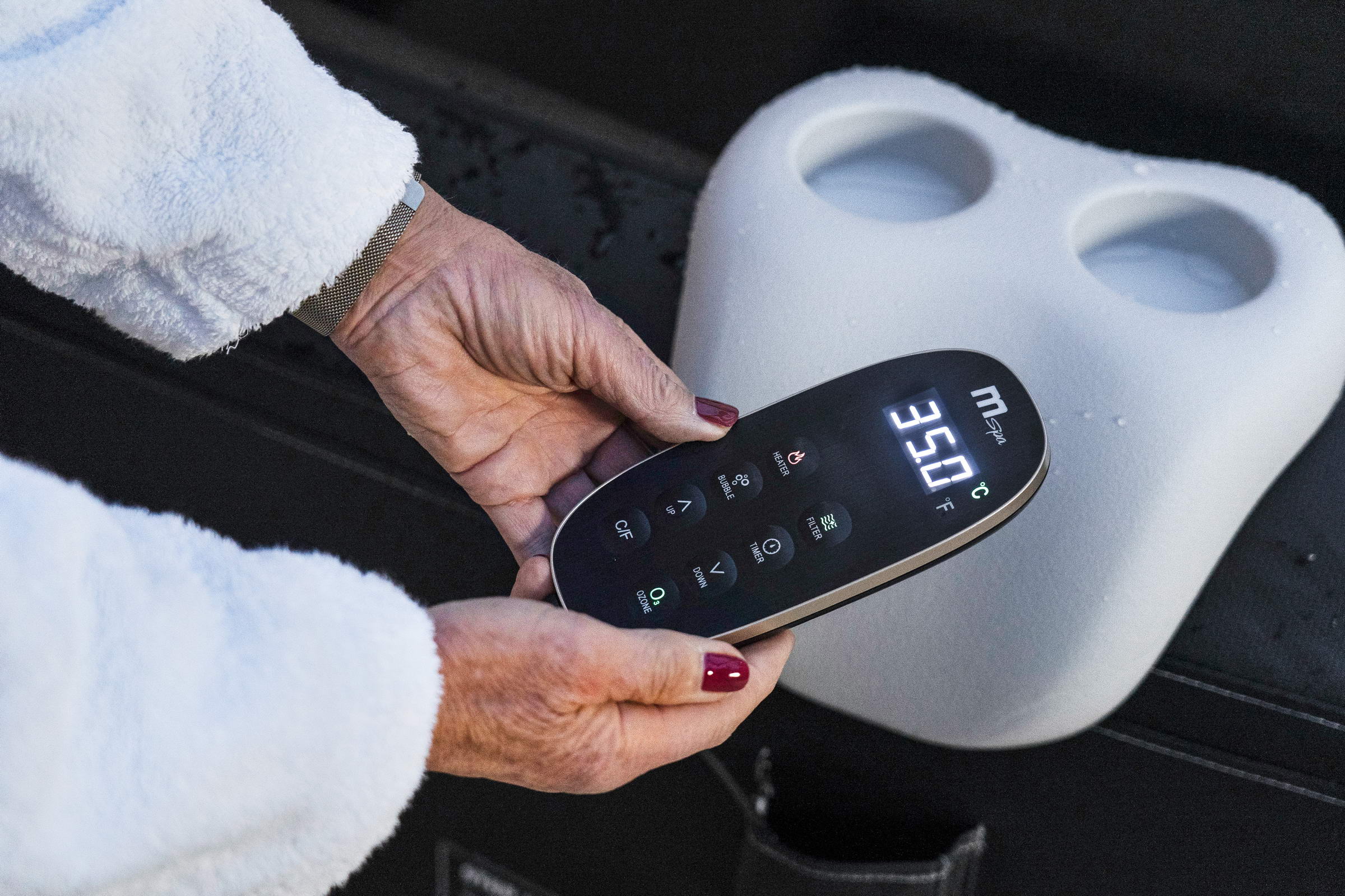 Модели MSPA 2024 года поставляются с новым проводным контроллером, который можно хранить вне спа.