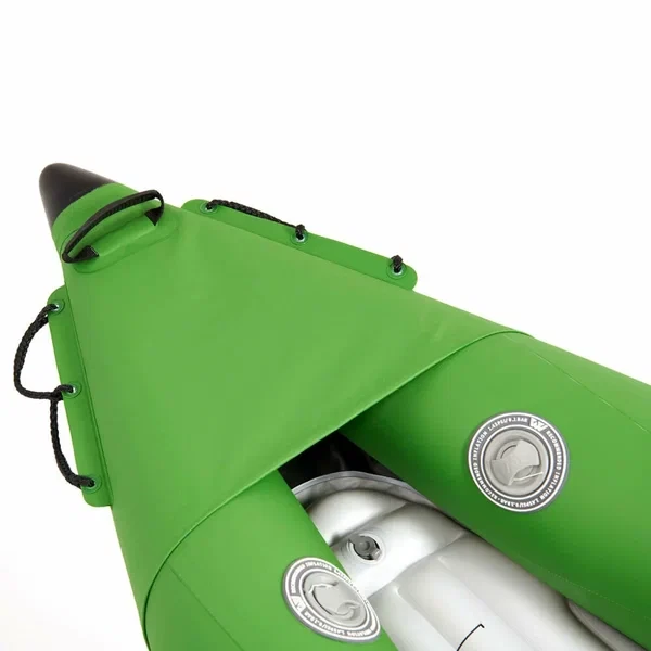 Модель весит всего 11.8 кг, легко переносится и быстро собирается. Грузоподъемность до 180 кг позволяет использовать его вдвоем с рюкзаками или оборудованием. Устойчивое надувное дно и прочные баллоны делают каяк надежным даже для начинающих.