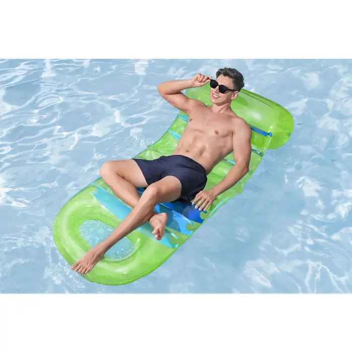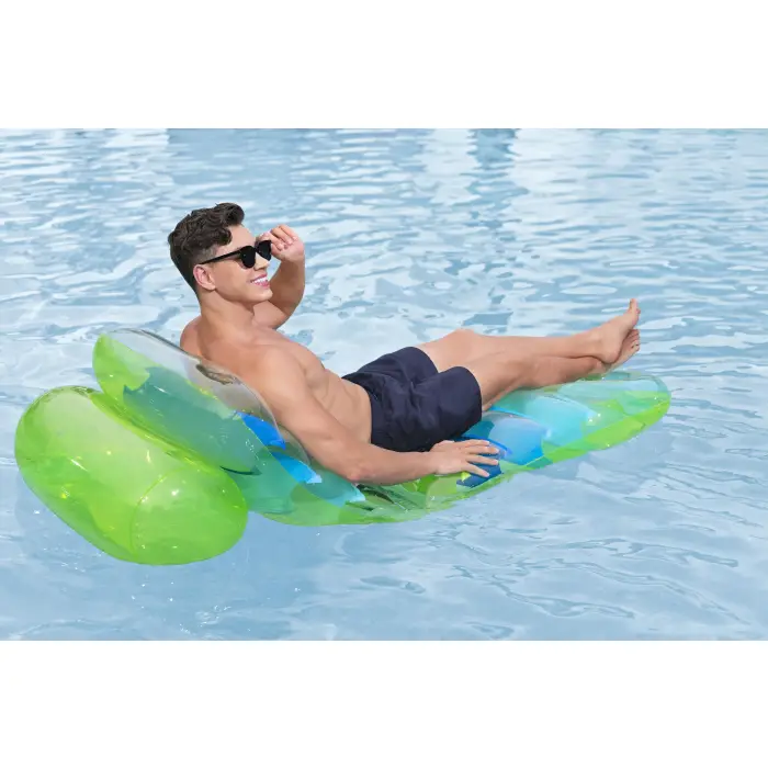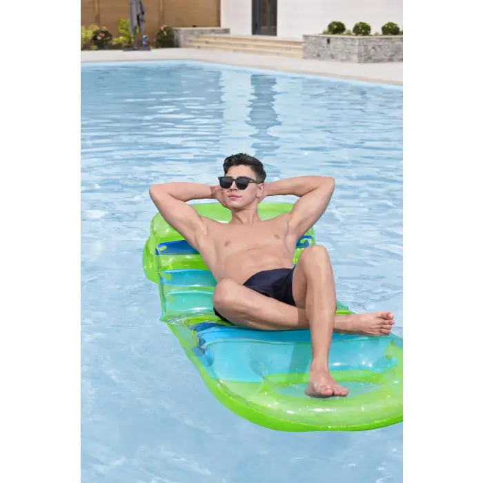 Наполните лето отдыхом и яркими красками с регулируемым надувным матрасом Bestway® Summer Colors™! Этот надувной матрас оснащен прочными внутренними фиксаторами для комфорта и поддержки, а также смотровым окном в конце матраса для наблюдения за водой. Зелёный прозрачный верх позволяет видеть ярко-синие цветные внутренние фиксаторы, а регулируемая спинка позволяет надувать и сдувать прикреплённую камеру по своему усмотрению. Надуйте камеру, чтобы встать прямо, и сдуйте её, чтобы лечь и использовать матрас как плоский. Кроме того, надувной матрас Summer Colors легко складывается в сумку для спокойного дня у бассейна, озера или пляжа. Проведите незабываемый купальный сезон с регулируемым надувным матрасом Bestway® Summer Colors!